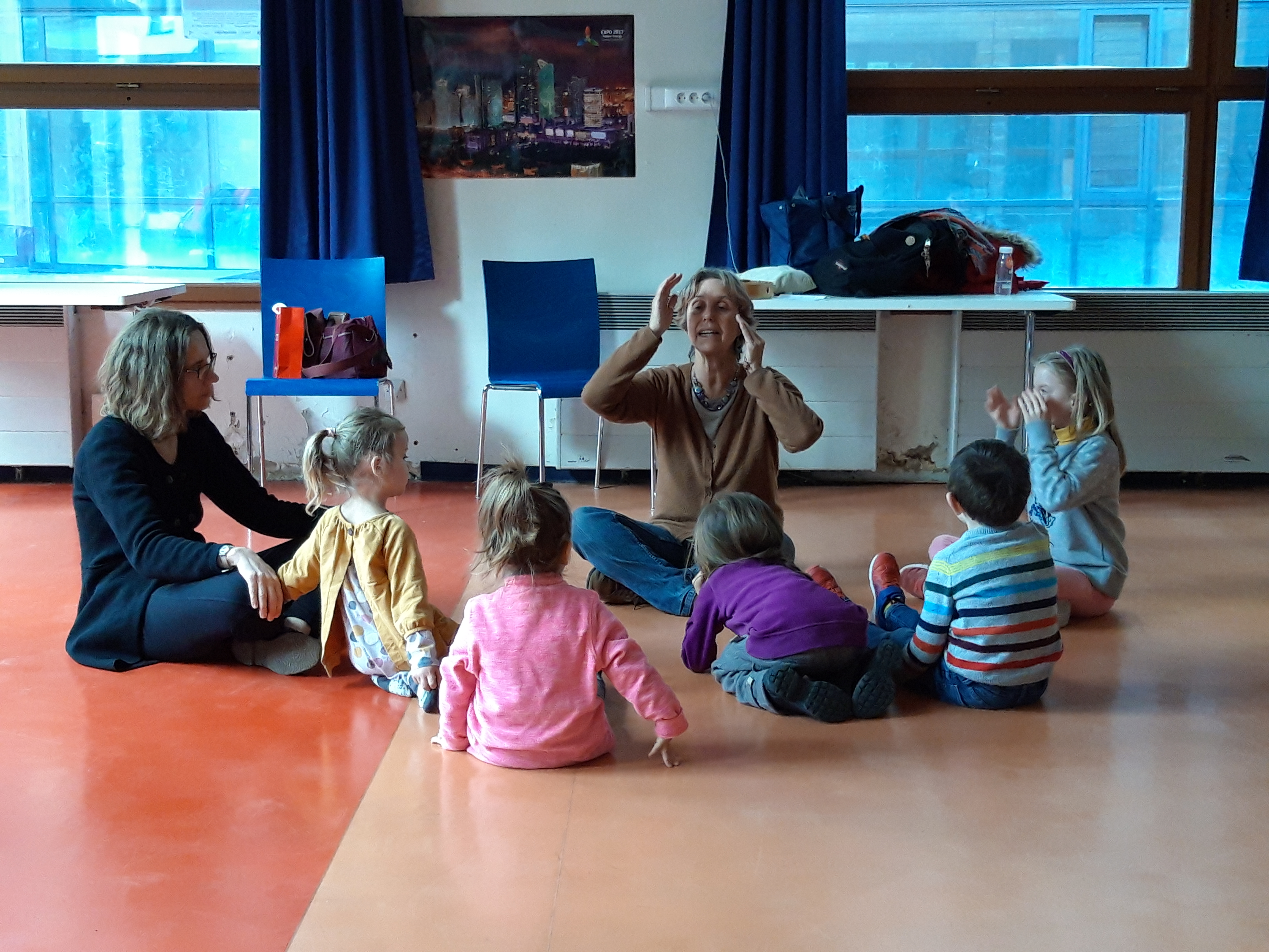 Sensibilisation par des jeux musicaux à partir de marches, rythmes et balancements.