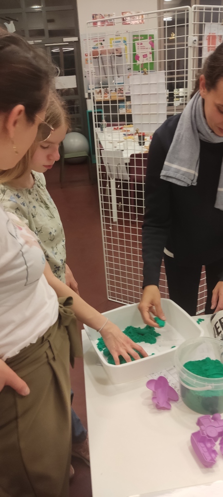 Nous avons eu l’occasion de faire découvrir un atelier de Yoga en Famille, un atelier de Découverte Sensorielle, et un atelier de découverte du Braille. Le tout autour d’un buffet amical subventionné par la Maison des Ensembles.